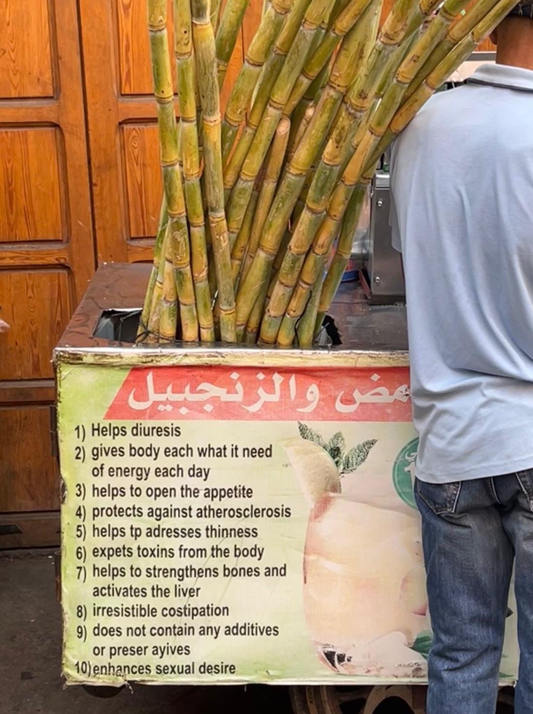 Marrakech is an absolute hole, and I’m going to cover much more interesting places in this writeup. Thus, the above is the only Marrakech photo I’m posting: the supposed benefits of drinking sugarcane juice.